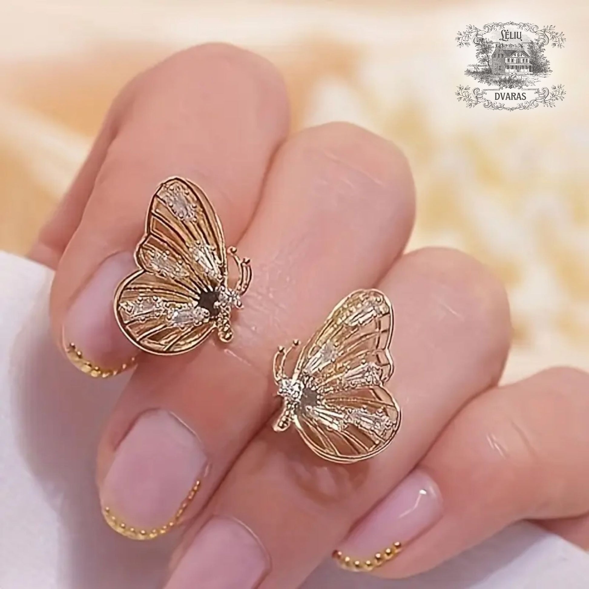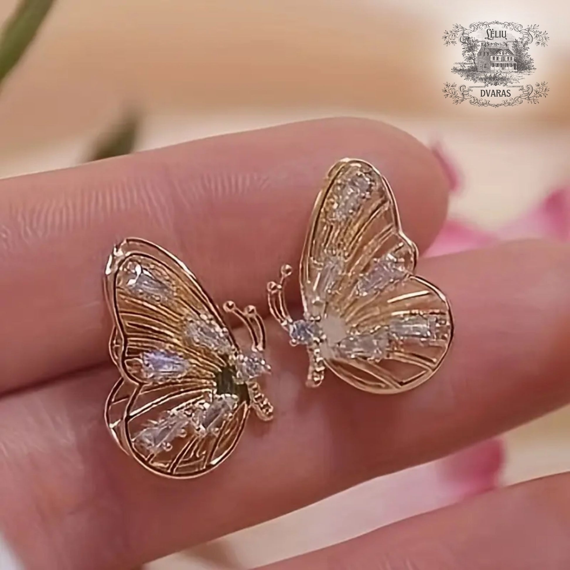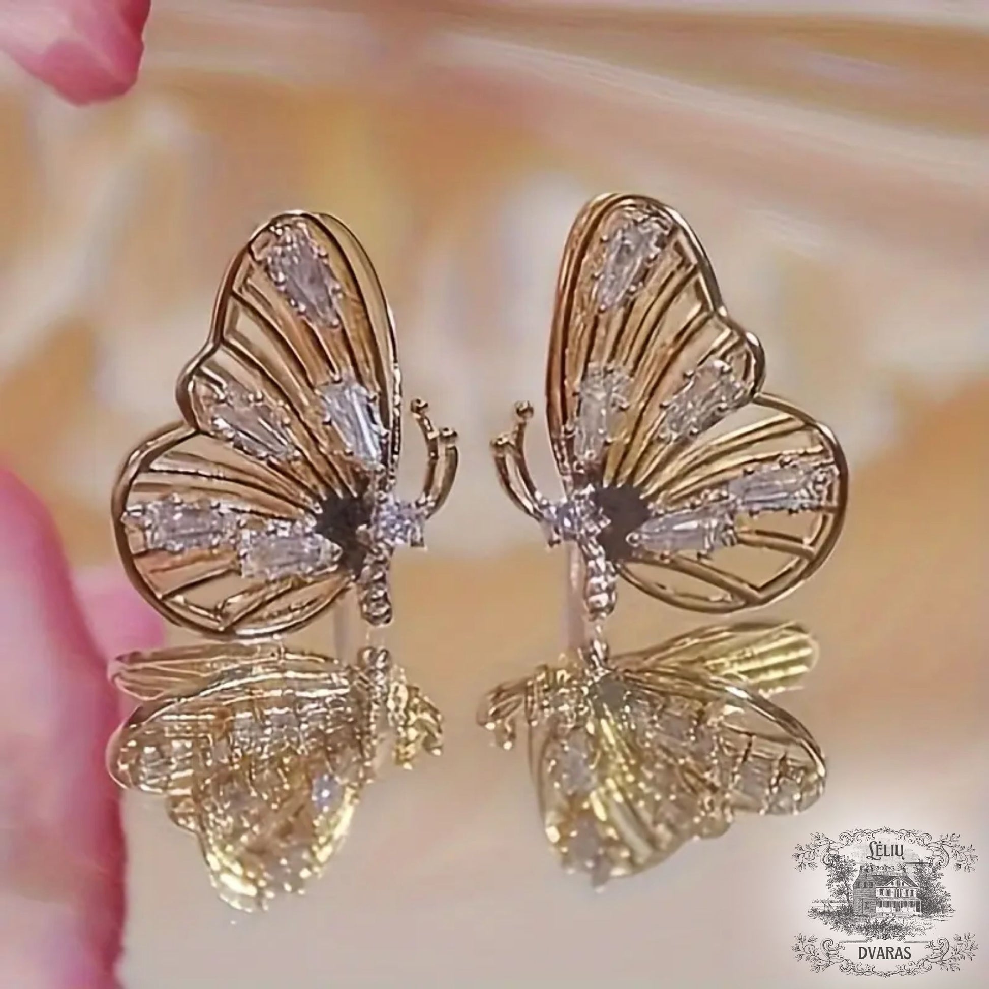 Lyg lengviausias dvaro sodo sparnų plasnojimas, šie auskarai atgimsta kaip pavasario paslaptis. Drugelių spindesys mena jaunystės lengvumą, švelnias svajones ir trapų prisilietimą prie grožio. Kiekvienas cirkonio spindulys, tarsi rasos lašas ant rožės žiedlapio, žaižaruoja ir suteikia ypatingos elegancijos.