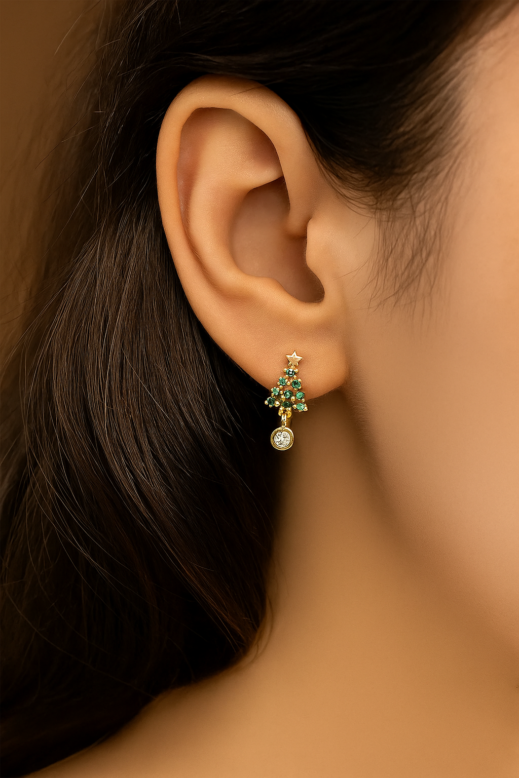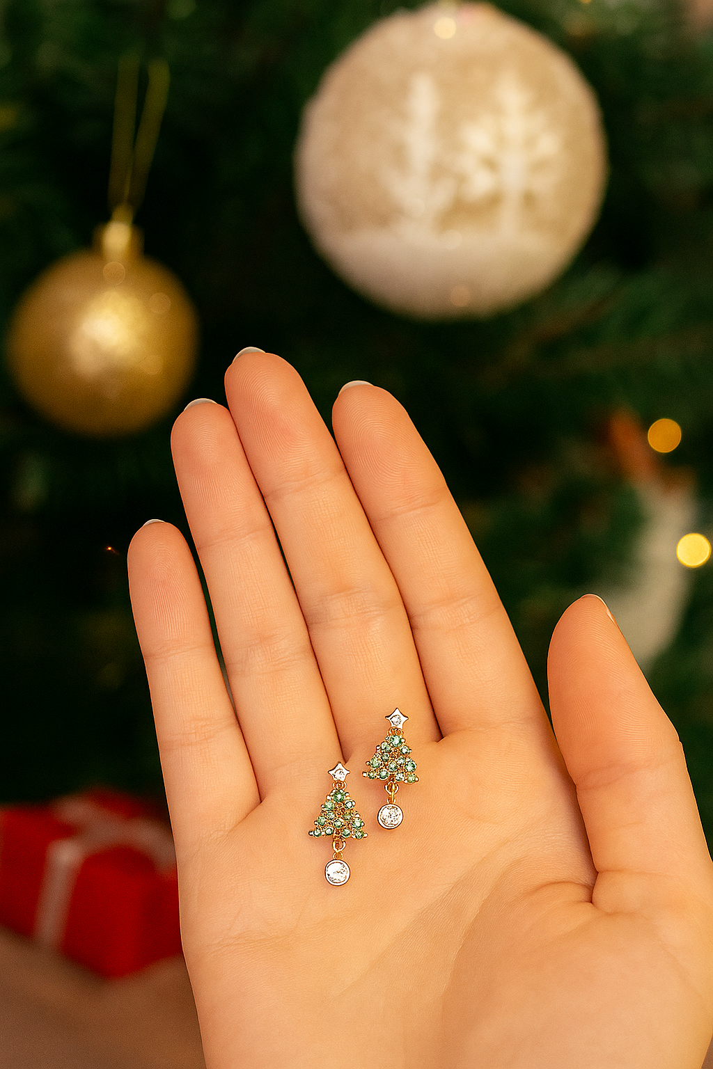Elegantiški auskarai su kalėdinės eglutės ir snaigės motyvais – subtili, bet žaisminga detalė, tinkanti tiek šventiniam vakarui, tiek kasdienai prieš Šventes. 💫
