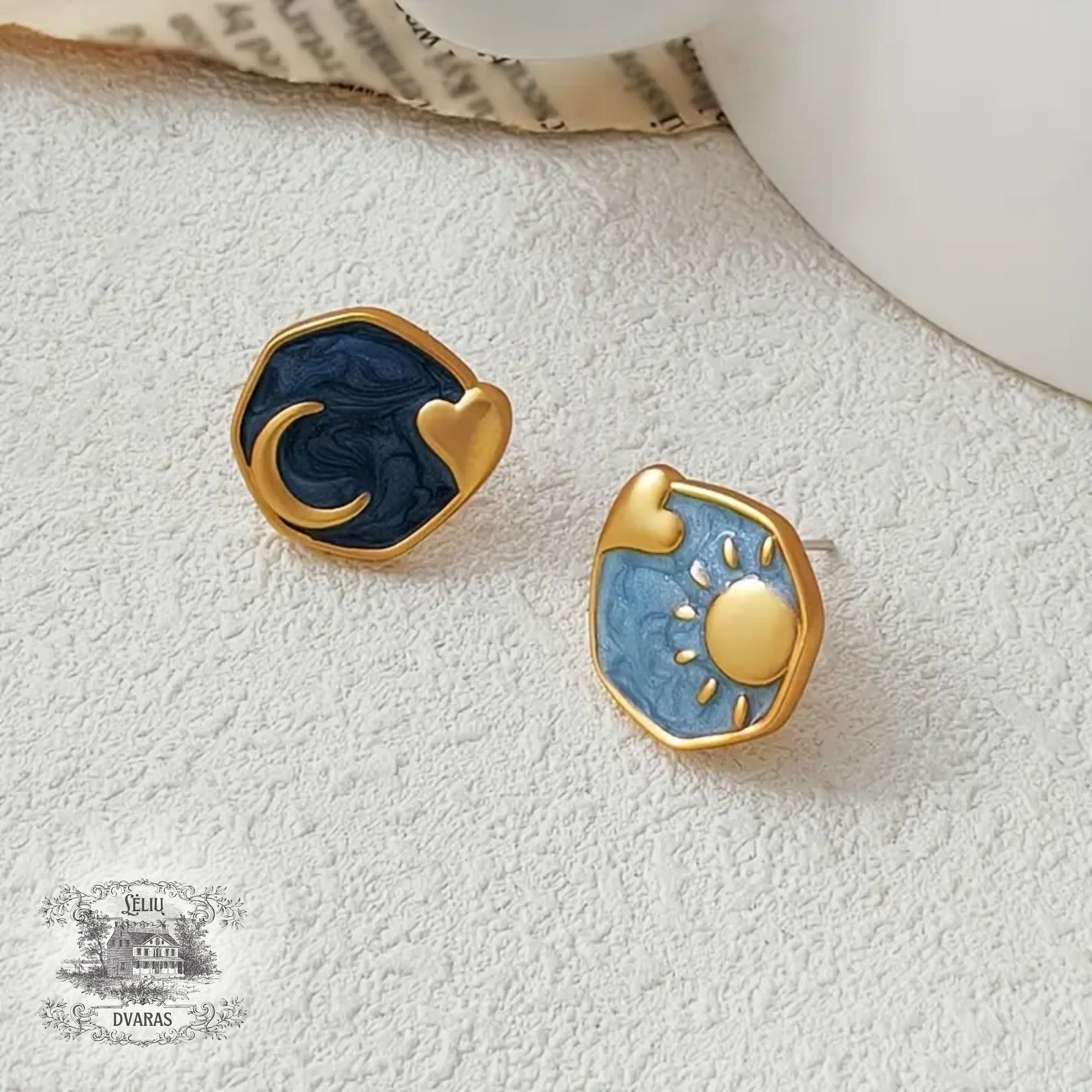Šie asimetriški auskarai įkūnija seną pasakojimą apie Saulę ir Mėnulį – amžinus dangaus keliautojus. Saulė – šviesos ir gyvybės nešėja, Mėnulis – tylos, sapnų ir paslapties sergėtojas. Kartu jie primena, kad kiekvienoje šviesoje slypi truputis tamsos, o kiekvienoje naktyje – dalelė šviesos.