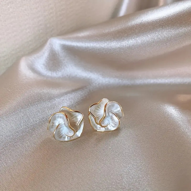 Maži, elegantiški auskarai su kamelijos žiedais.
