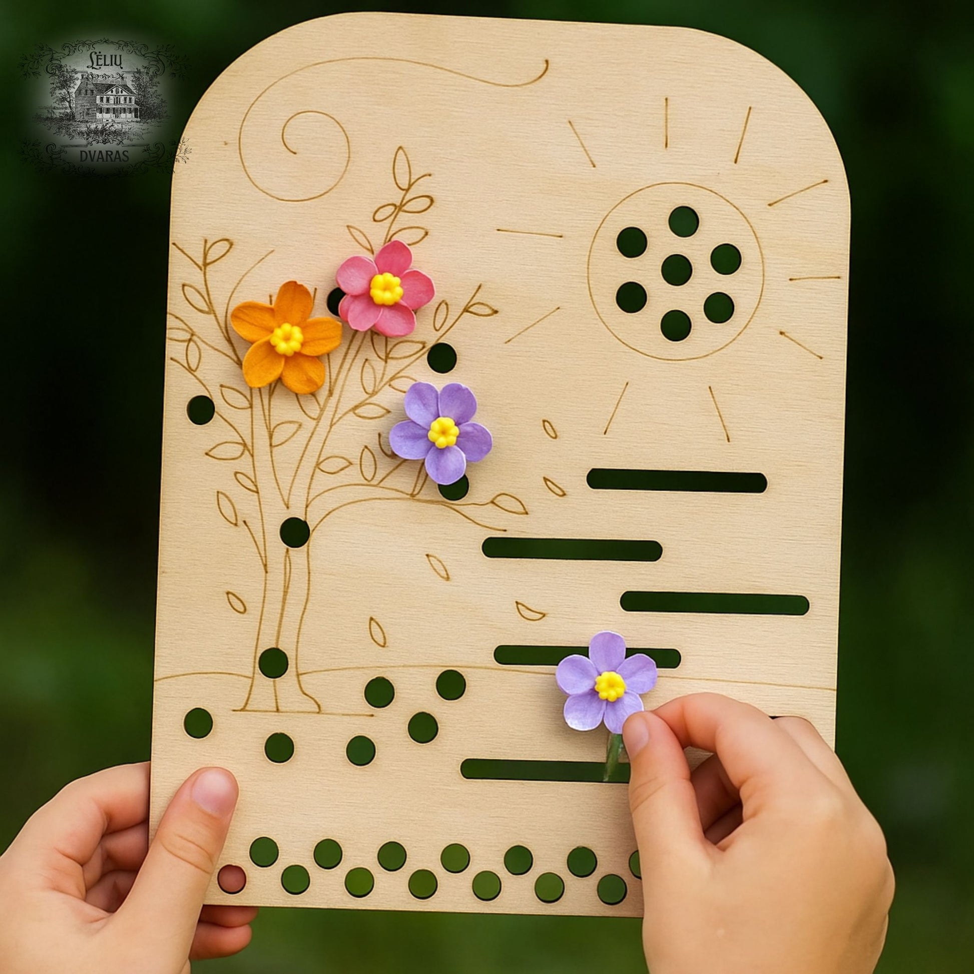 🌿 Vaikų pamėgta medinė gėlių kūrybos lentelė – kvietimas žaisti su gamta!