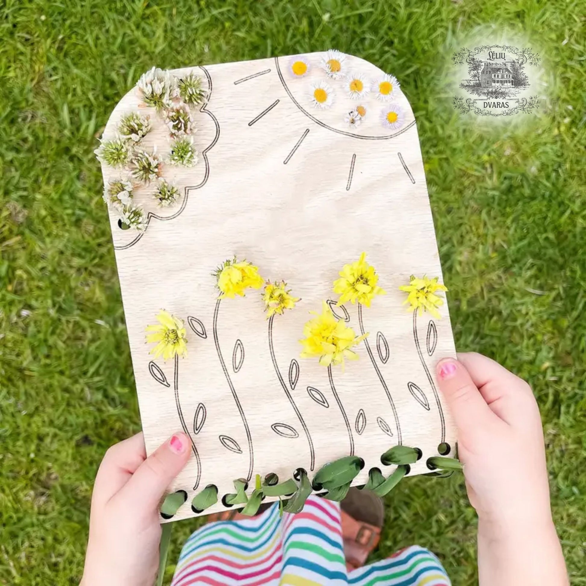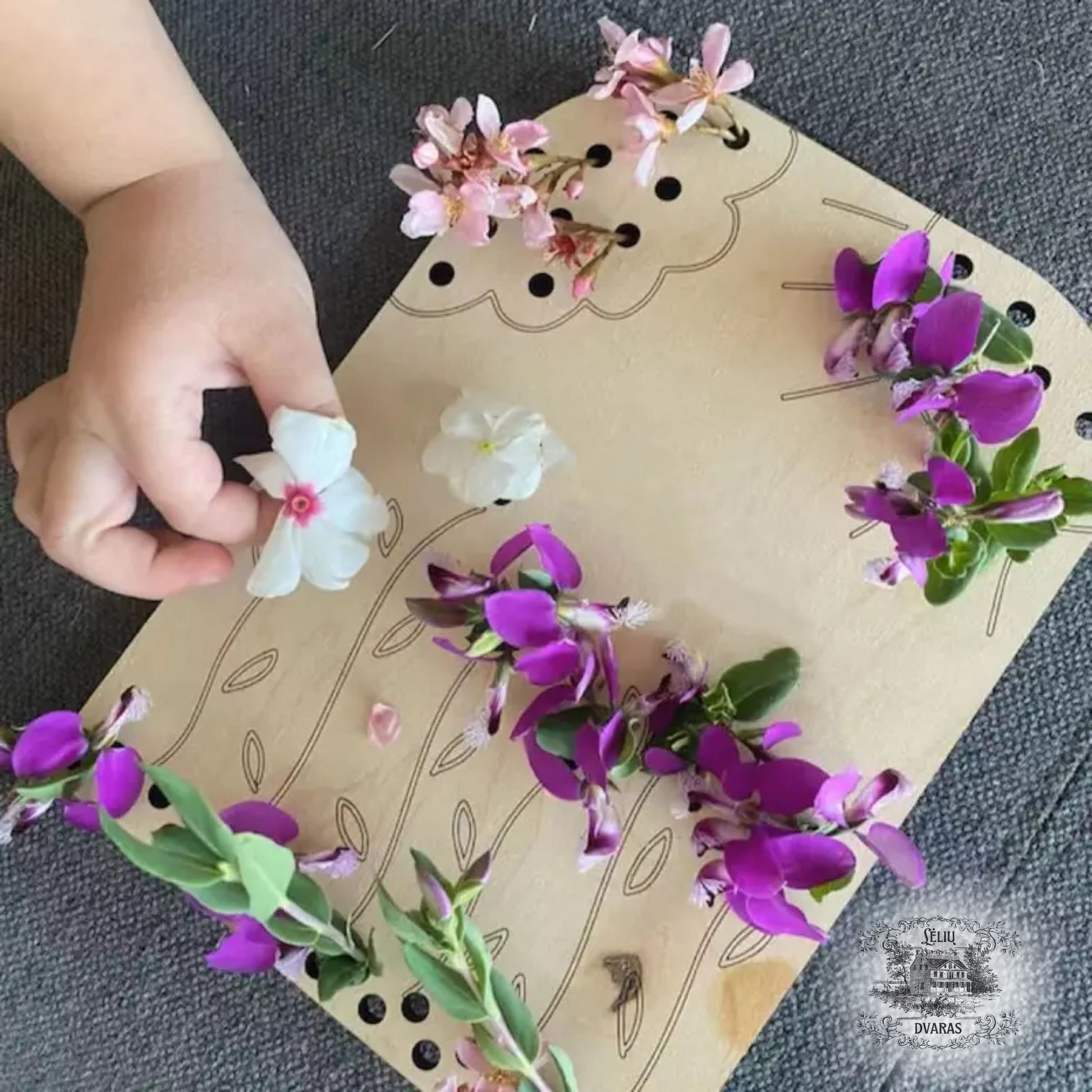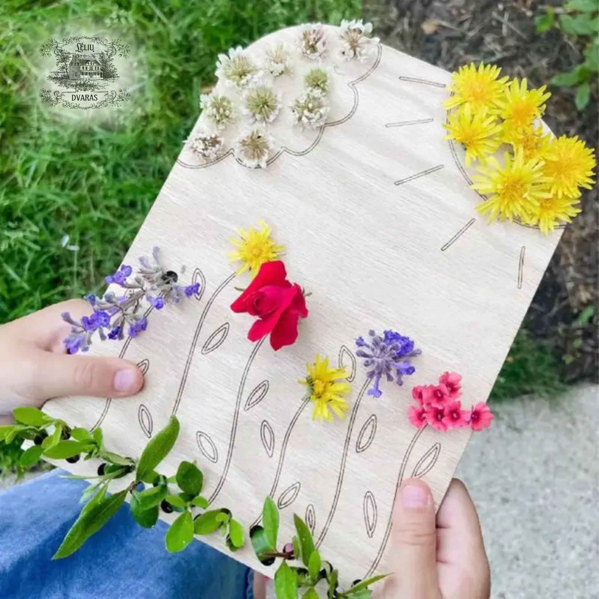 Tai elegantiška medinė veiklos lentelė, į kurią vaikai gali įdėti įvairiausių gėlių, žolelių.