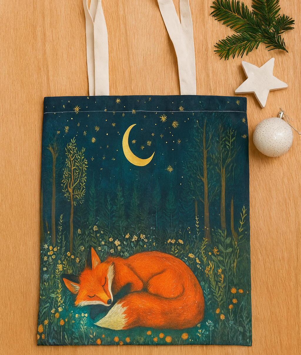 Tarsi iš pasakų miško atkeliavęs, šis tvirtas, dvipusė spauda puoštas medžiaginis maišelis slepia ramią nakties akimirką – jaukiai susirangiusią laputę Rudnę tarp žiedų ir žvaigždžių. Švelnios, sodrios spalvos ir kruopščios iliustracijos detalės suteikia jam ypatingo šilumos ir pasakos žavesio.