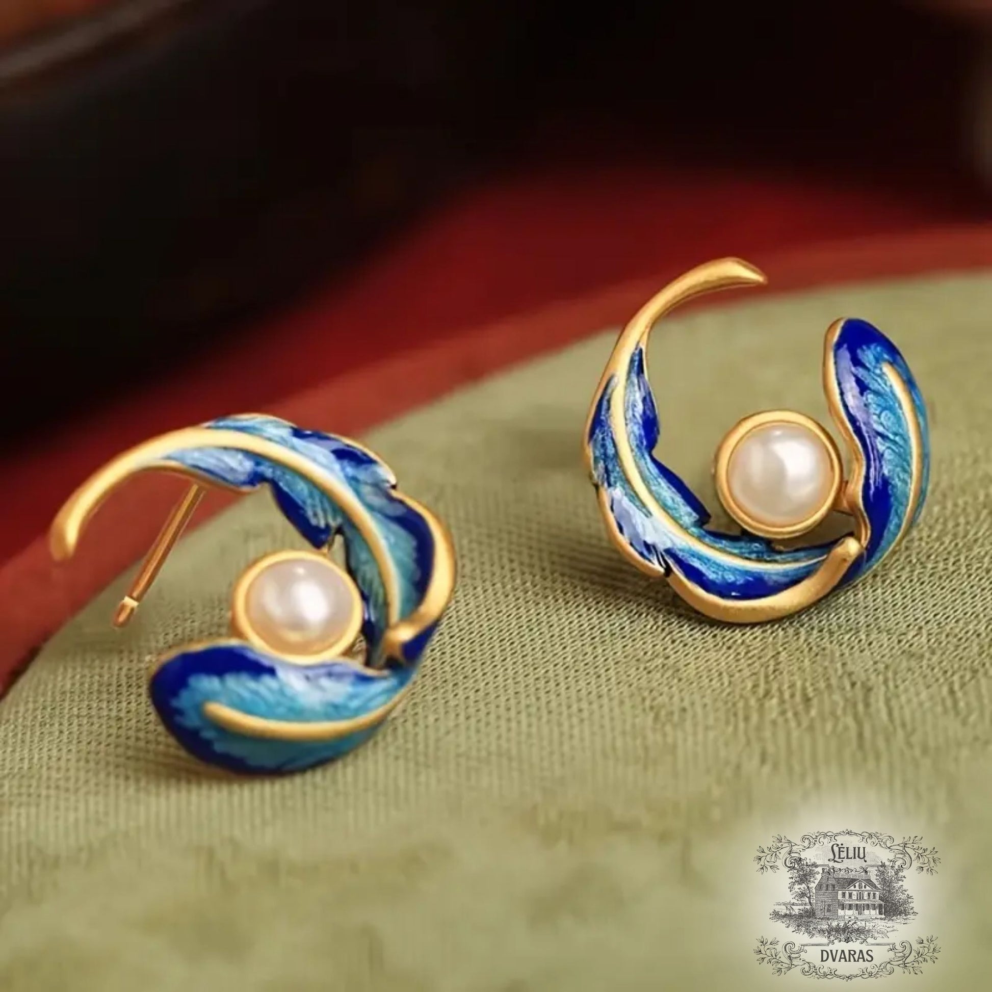Auskarus puošia subtilus perlo intarpas, primenantis mažą dvaro paslaptį, kurią galima nešiotis širdyje. 🌙💙