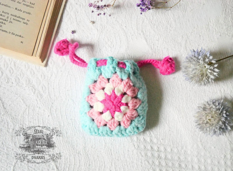 Šis švelnus, jaukus ir spalvingas megztas piniginės krepšelis – tai ne tik vieta monetoms, bet ir mažoms paslaptims, kurios sutelpa į šį krepšelį - lipdukai, sagutės, džiovintos gėlytės, fėjų dulkės…
