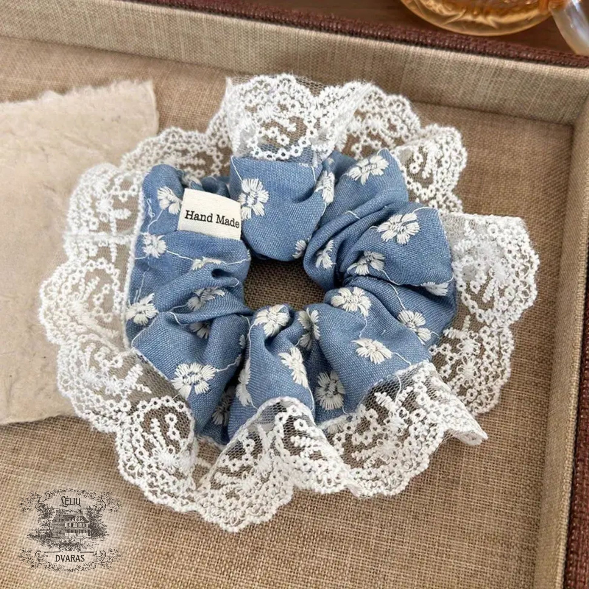 Plaukų gumytė - siuvinėta, nėrinukai