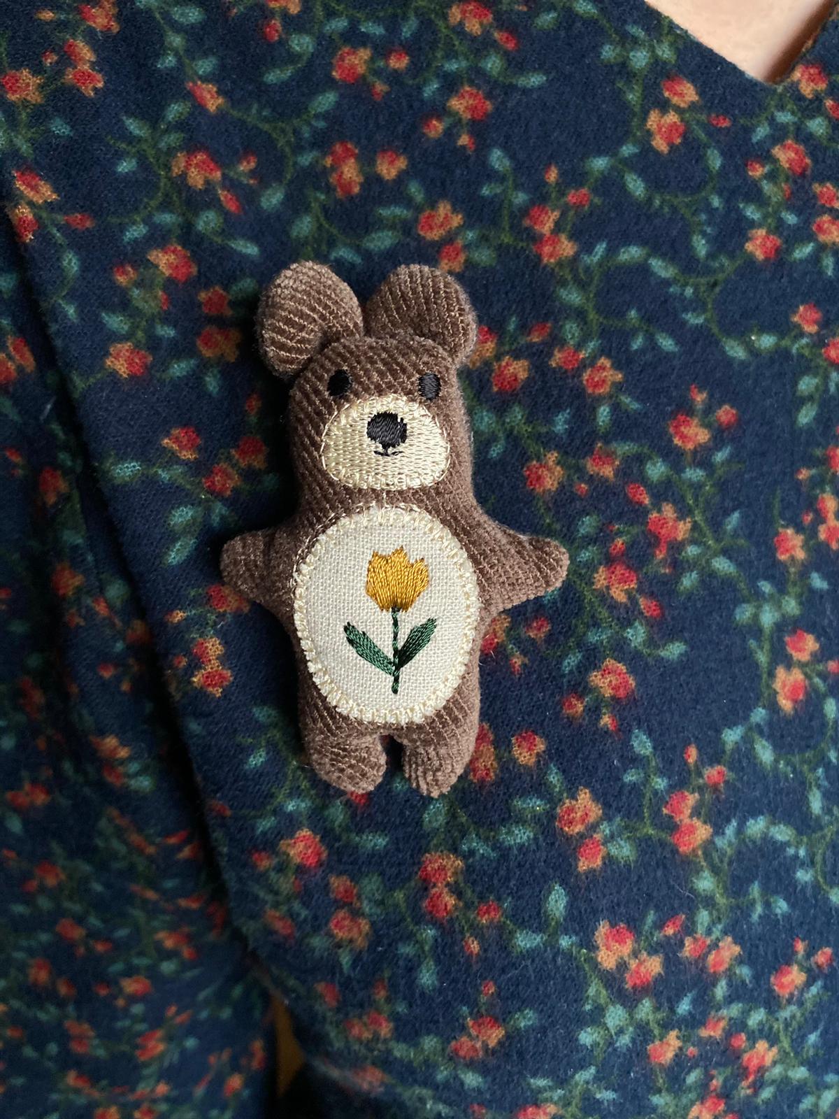 Rankų darbo sagė, sukurta su meile ir pasakišku kruopštumu – lyg iš senų dvaro skrynių, kur kiekvienas papuošalas slepia istoriją. Lokės kailis žvilga tarsi naktinis aksomas, o jos akys primena mažas žvaigždeles.