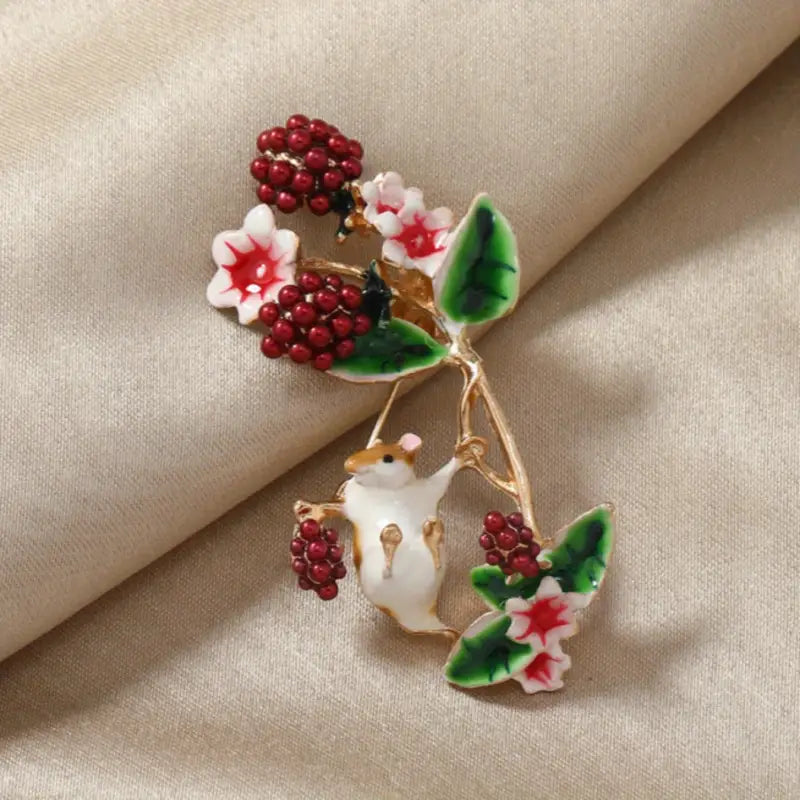 Mielas emaliuotas segtukas – pelytė tarp žalių lapelių ir raudonų uogelių 🍓🐭