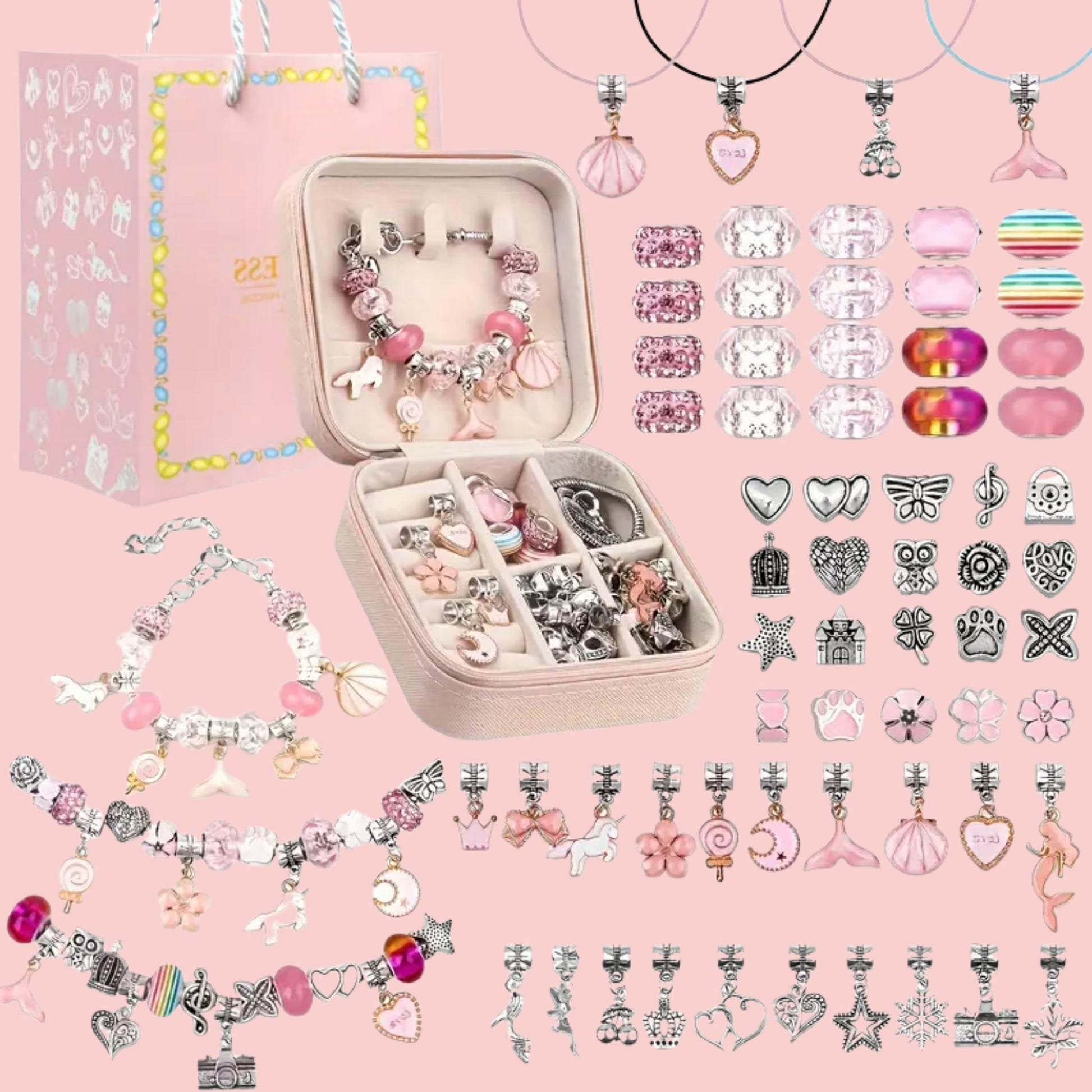 Joje slypi net 66 detalės: spalvingi karoliukai, žavūs pakabukai, žėrintys tarpukai ir viskas, ko reikia norint pasigaminti unikales apyrankes ar vėrinius. 🦄🌸🌈