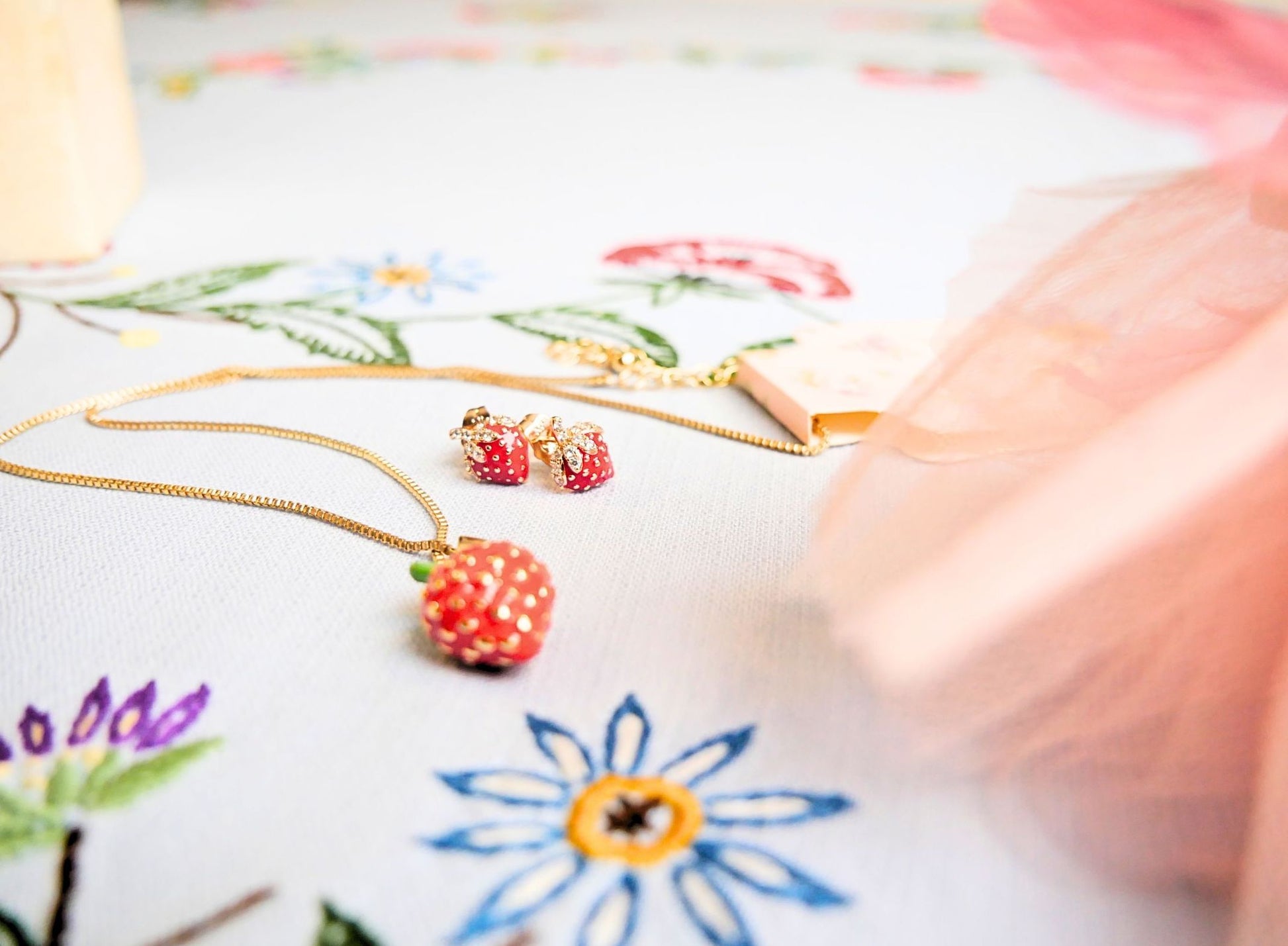Aš jas surinkau, padėkojau – ir parvežiau papuošalų pavidalu tau. Žemuogės primena, kad grožis slypi paprastume 🍓✨