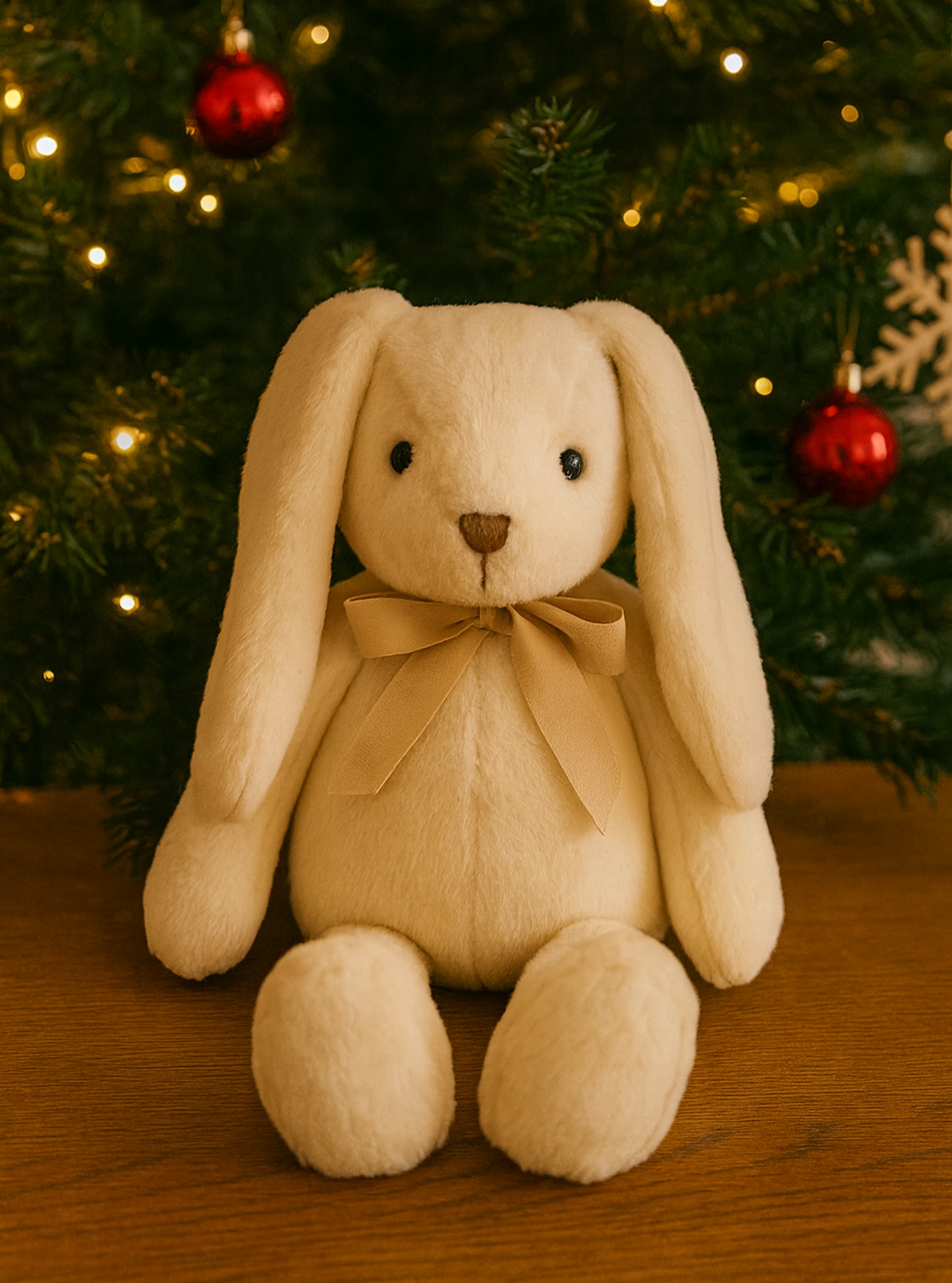 Jo ūgis 43 cm 🎁 Kartu su zuikiu atkeliaus: – pasaka apie zuikį Fernandą, atspausdinta ant dekoratyvaus lapo – personalizuotas laiškas mažajam šeimininkui – nuo paties zuikio!